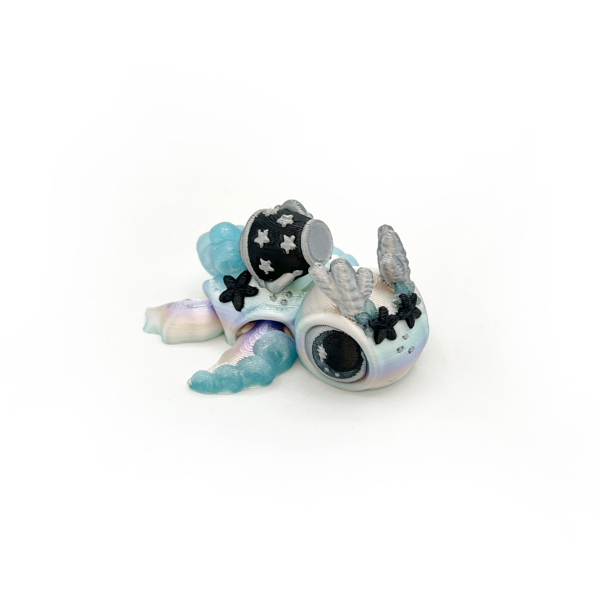Each turtle is 3D printed with a flexible, articulated body that allows gentle movement and satisfying wiggle. It’s a lightweight figure, perfect for gifting, displaying, or keeping by your side.